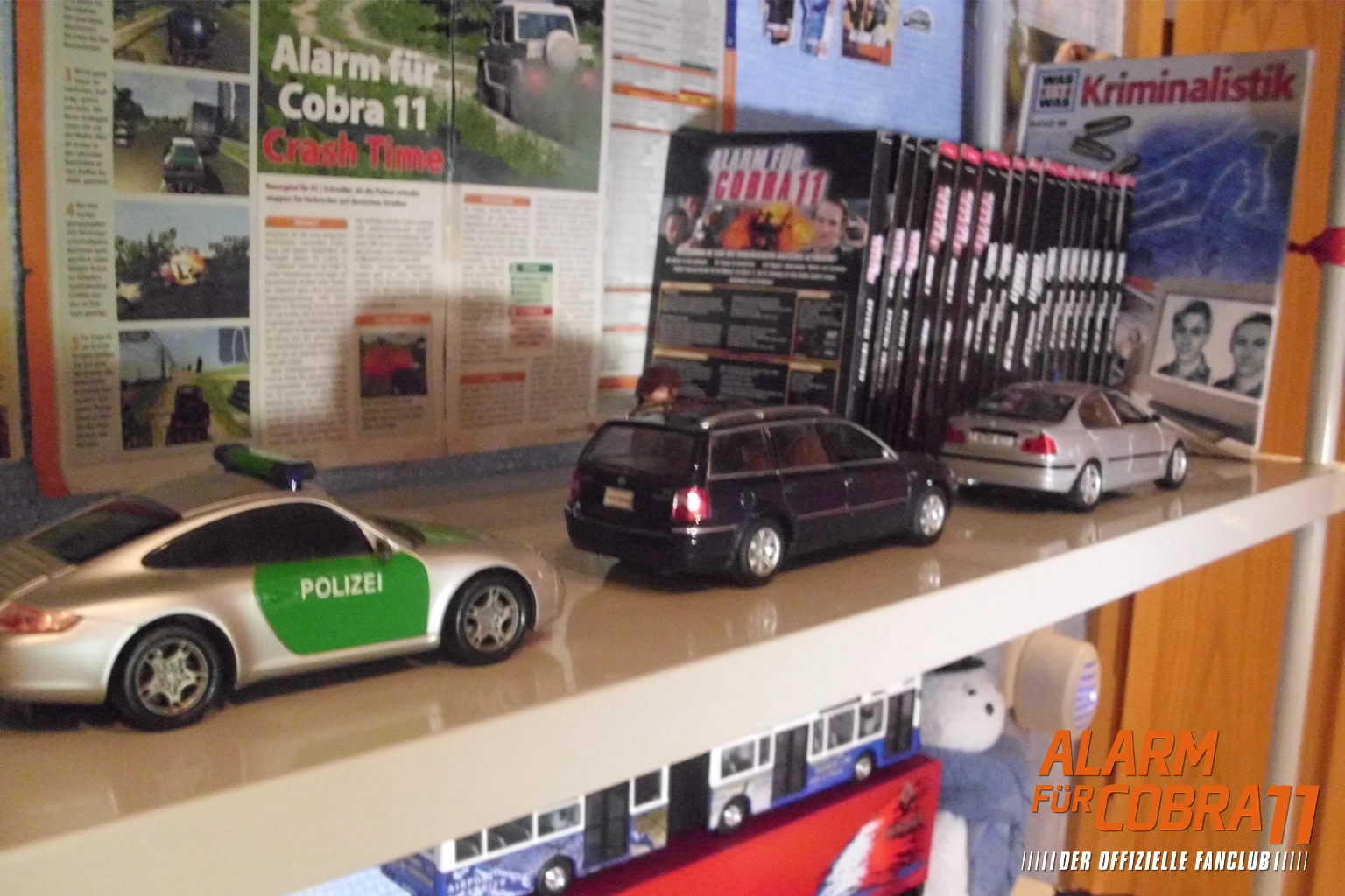 Es dauerte nicht lange und die ersten Spielzeugautos, die den Serienvorbildern möglichst genau entsprachen wurden gekauft. So entstand im Laufe der Zeit eine große Sammlung an Polizeiautos, welche teilweise modifiziert wurden, um denen aus der Serie noch exakter zu entsprechen. Es folgten Autogrammkarten der Schauspieler/innen, Blaulichter aus der Serie und mehr. Ein Regal in meinem Kinderzimmer wurde zum Fan-Regal, mit Zeitungsartikeln, Modellautos und mehr. Doch das alles war mir nicht genug, selbst mein Kettcar wurde mit einem Blaulicht ausgestattet und Verfolgungsjagden aus der Serie wurden in der Pause auf dem Schulhof nachgespielt.